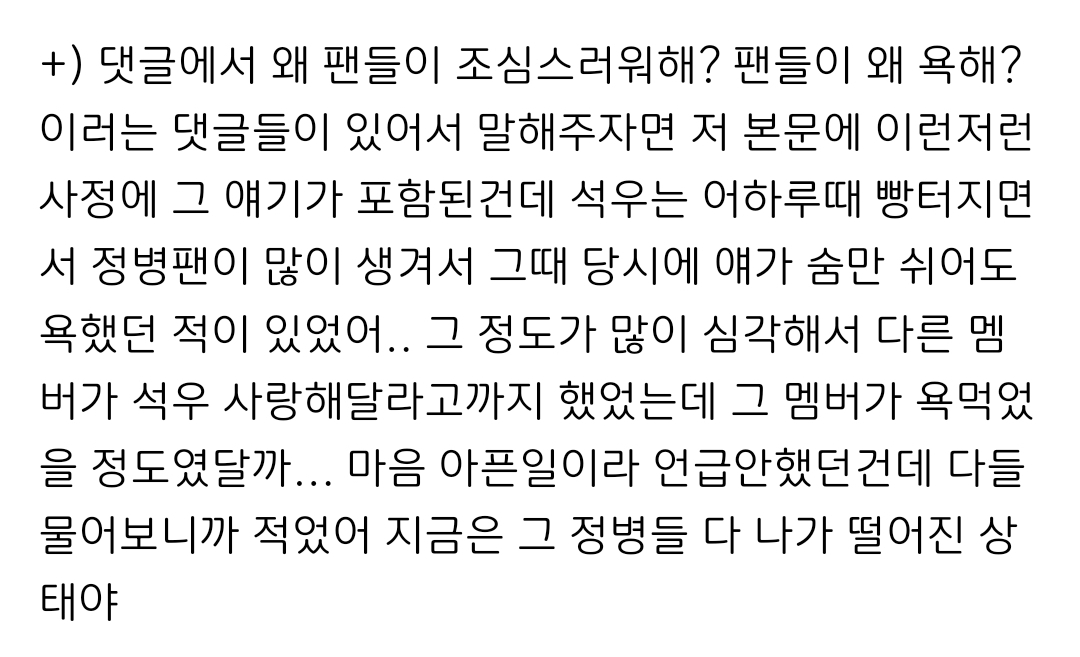 팬들이 저렇게 불만 제대로 터지니까 아이돌을 정리함