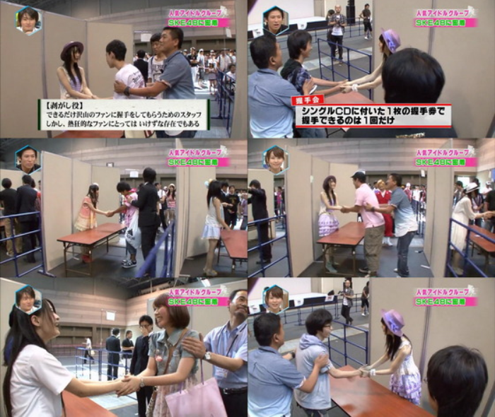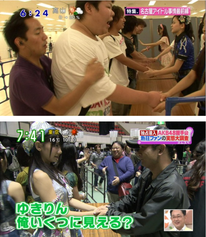 악수회 돌입해서 멤버의 손을 잡는다는가 하는 경우가 종종 있어왔다고 함.