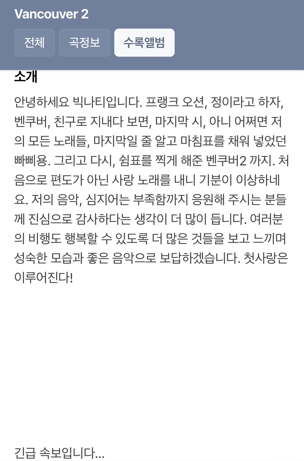 밴쿠버가 타이틀이 아니었음에도 반응이 좋았던 걸 (좋은 쪽으로도 , 나쁜쪽으로도) 인식했는지 밴쿠버2가 타이틀곡임