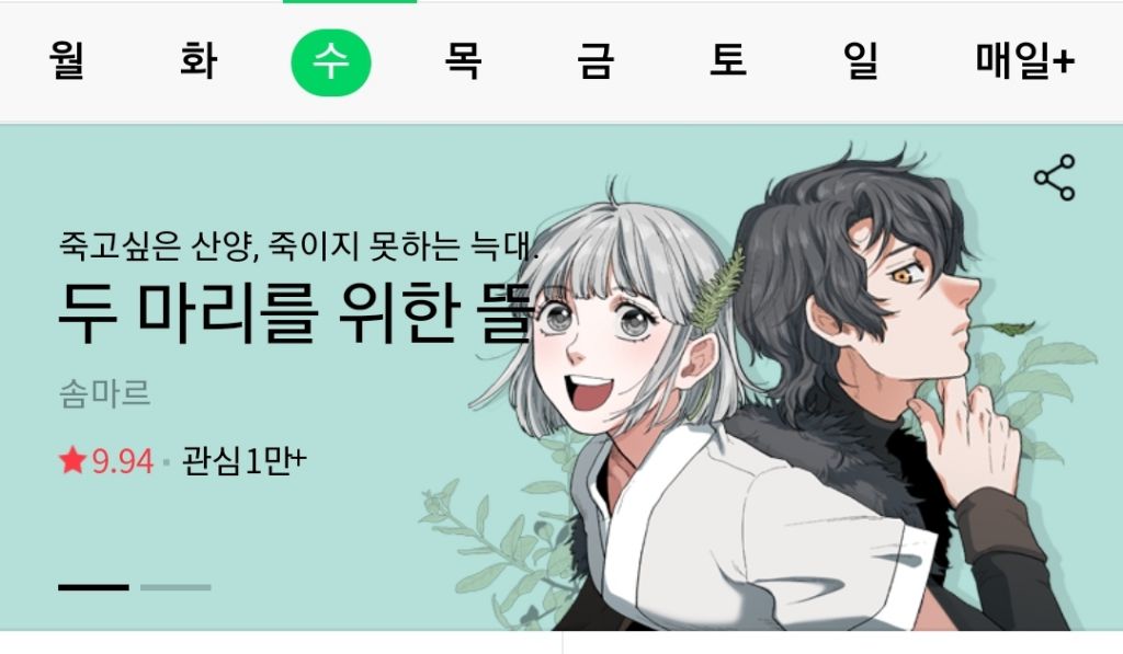 네이버 웹툰 <두마리를 위한 뜰> 입니다
