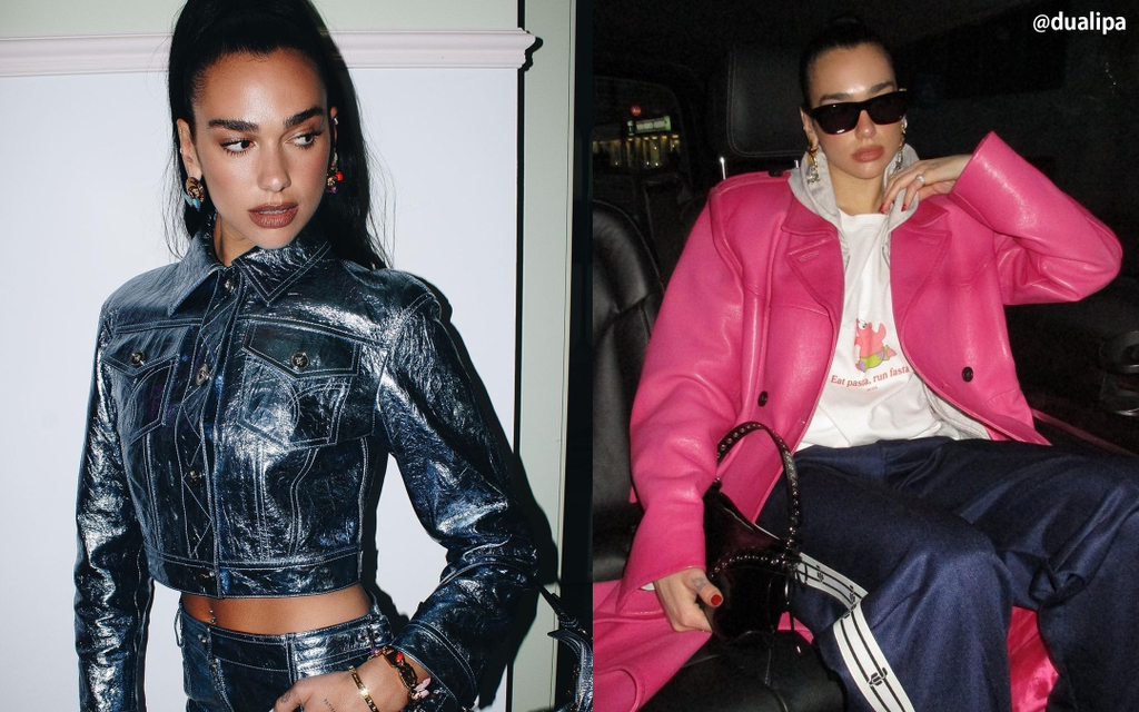 레더 재킷 하나도 결코 평범한 법이 없는 두아리파. 그녀는 베르사체와 함께 디자인한 2023 크루스 쇼 컬렉션 실버 크롭 재킷을 미니스커트와 세트로 스타일링 하는가 하면, 강렬한 형광 핑크의 롱 레더 재킷을 뚱이 캐릭터가 프린트된 티셔츠와 회색 후드 집업, 네이비 새틴 트레이닝 팬츠와 함께 매칭해 자칫하면 과할 수 있는 스타일을 멋지게 소화했다. 너도 나도 입는 흔한 컬러의 레더 재킷이 지겨울 때 도전해보면 좋을 스타일.