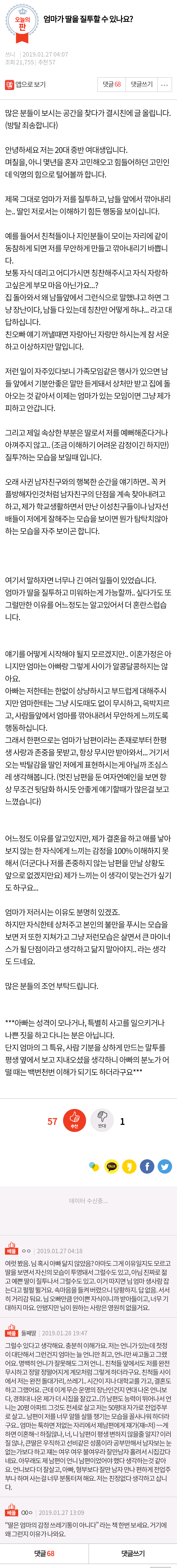 작성자객관적얼빠 작성시간 23.10.04 헐 난 아빠보다 엄마가 더 좋은디..