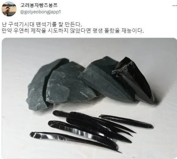 작성자잘빠진 쥐 작성시간 23.10.04 이 사람같은 석기 제작자들이 모여서 차린 회사도 있던데 ㅋㅋㅋ 박물관이나 유적지에서 선사시대 관련 체험부스 운영하더라