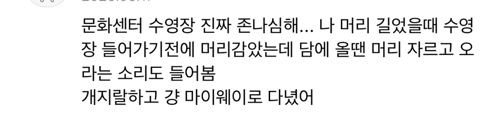 그러고 다른 수영장 엄마랑 다녔는데 엄마가 아줌마들이랑 친해서 너무 편하게 다녔음ㅠㅠ -