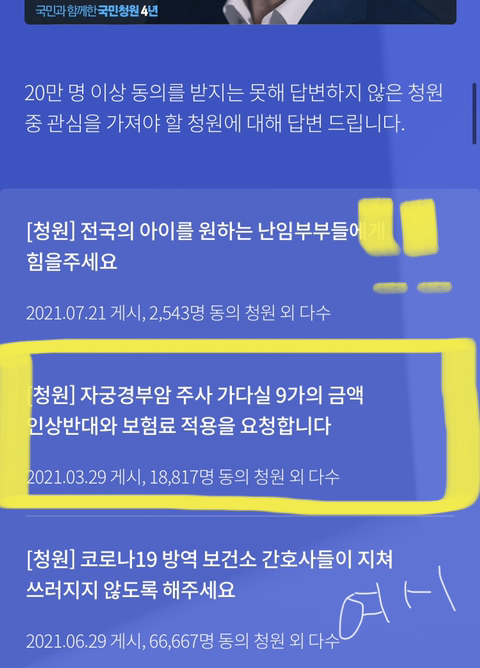 마주친 낯익은 청원 내용
