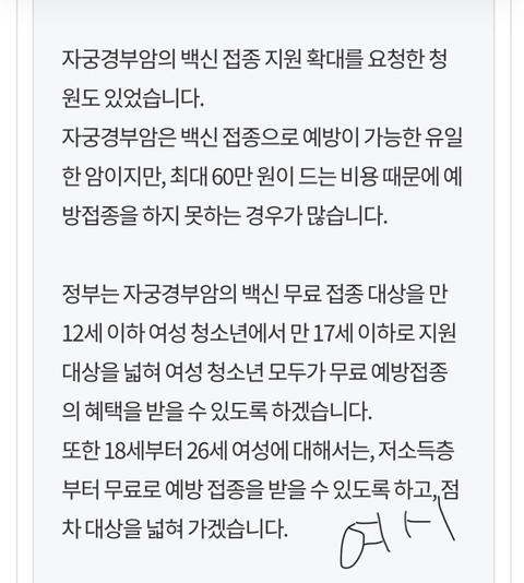 저소득층 여성 접종 가능하대