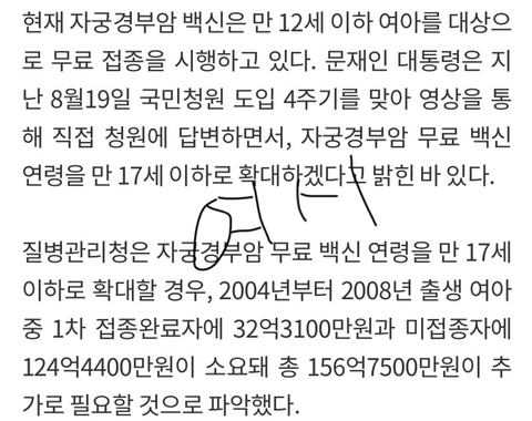 여자들이 자궁경부암 주사를 비싸서 꺼리는 것 때문에