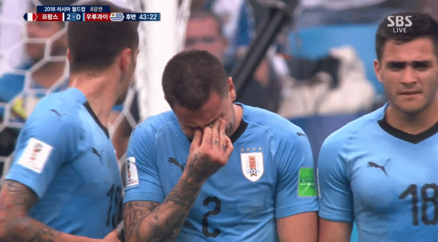 얼마남지 않은 시간 눈물을 흘리는 히메네즈 그것을 지켜보는 클럽팀 동료 그리즈만