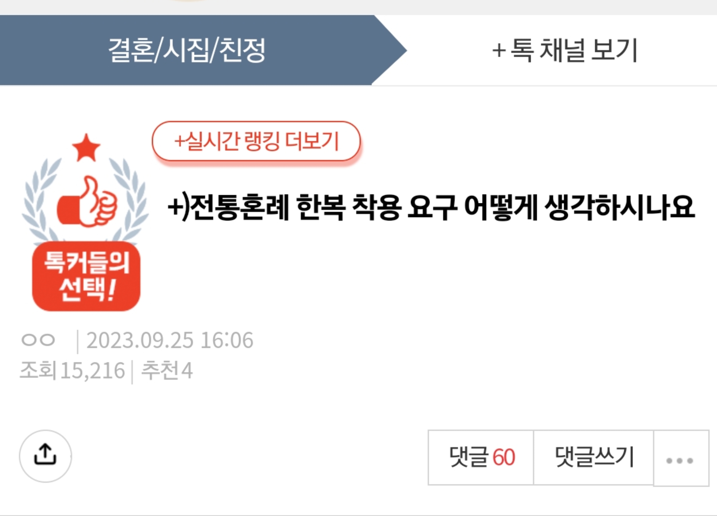 여기 기혼자도 많으시고 주변에 결혼하시거나 최근 결혼문화 다 아시는 분들이 많을테니