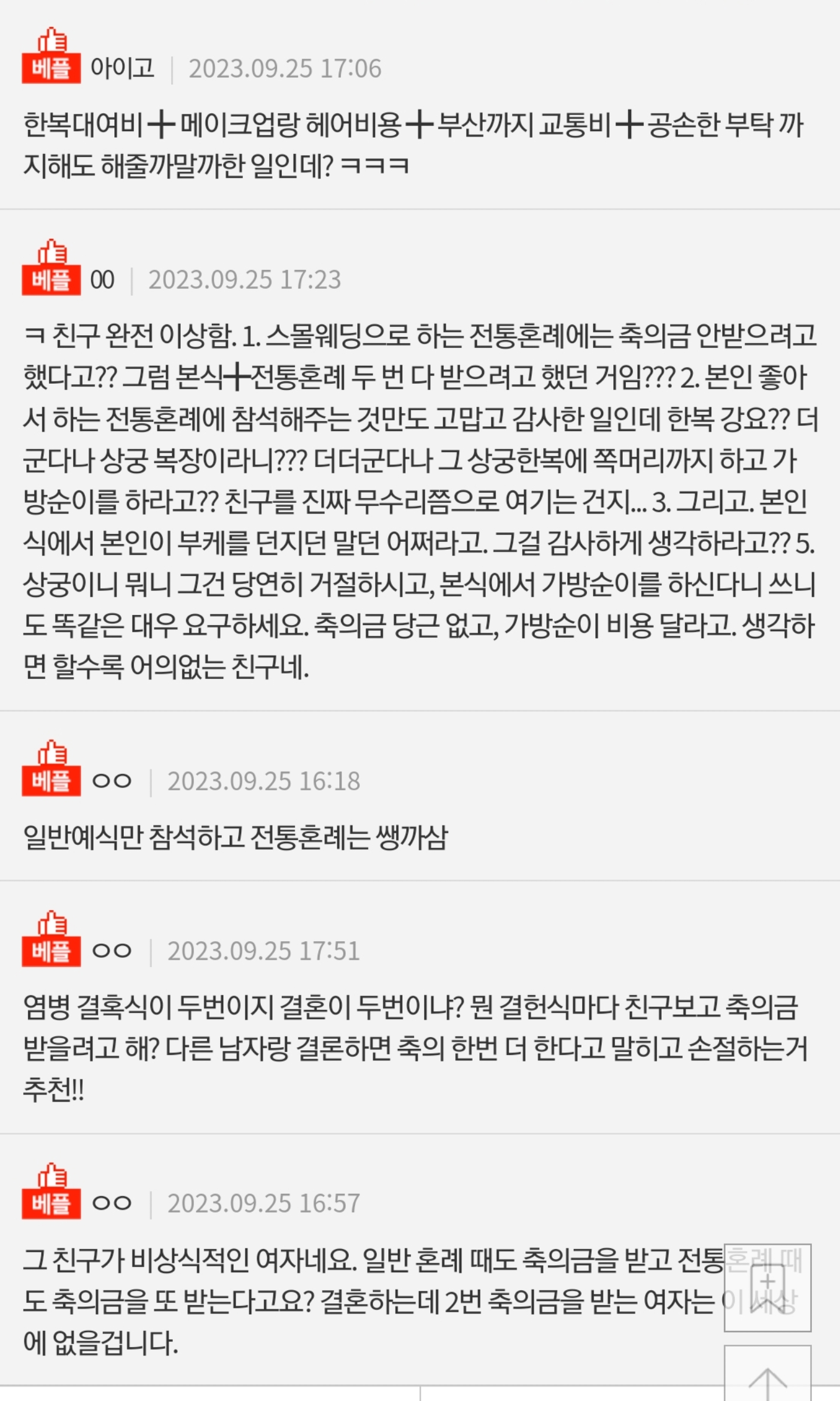 본인 결혼에만 이렇게 요구하는 건 선을 넘은 것 같다 과하다