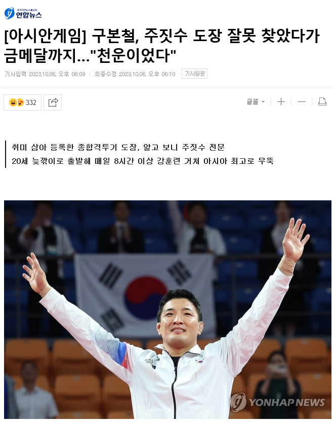 20살 때 종합격투기 도장인 줄 알고 들어갔는데 주짓수 도장... 빡세게 해서 아시안게임 금메달리스트 되버림