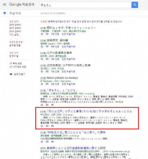 코오로시(子おろし)에 대한 논문도 몇개 보인다.