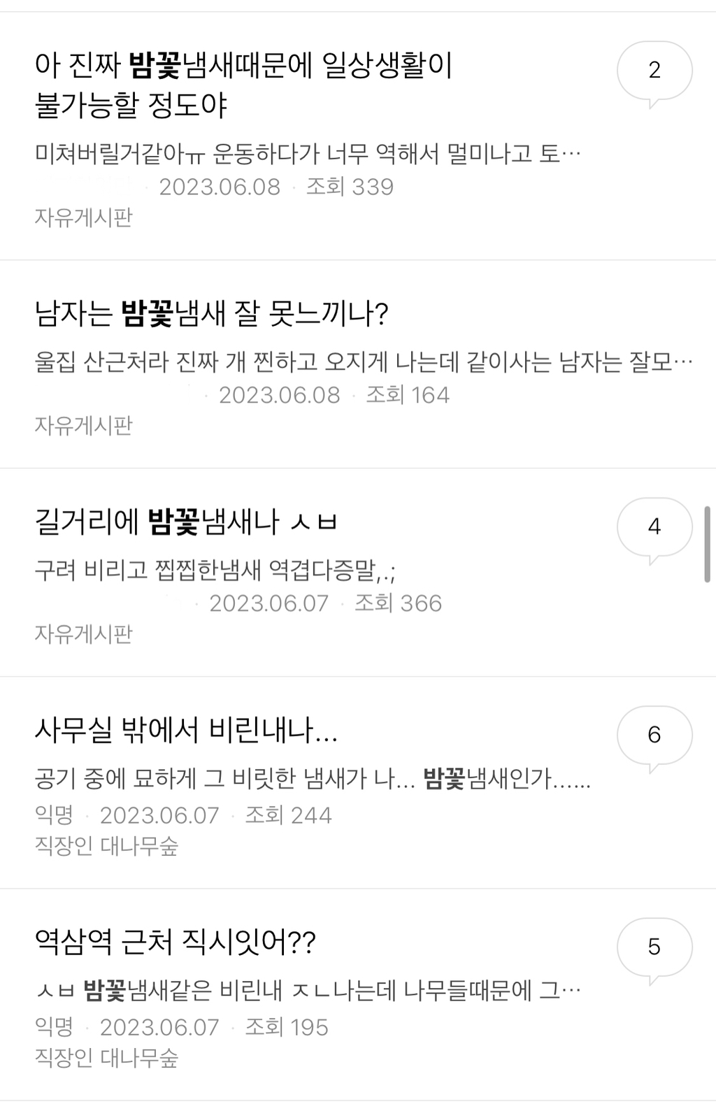 쇼츠 내용 : 남자들은 밤꽃향기를 역하다 생각하고,