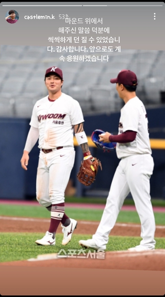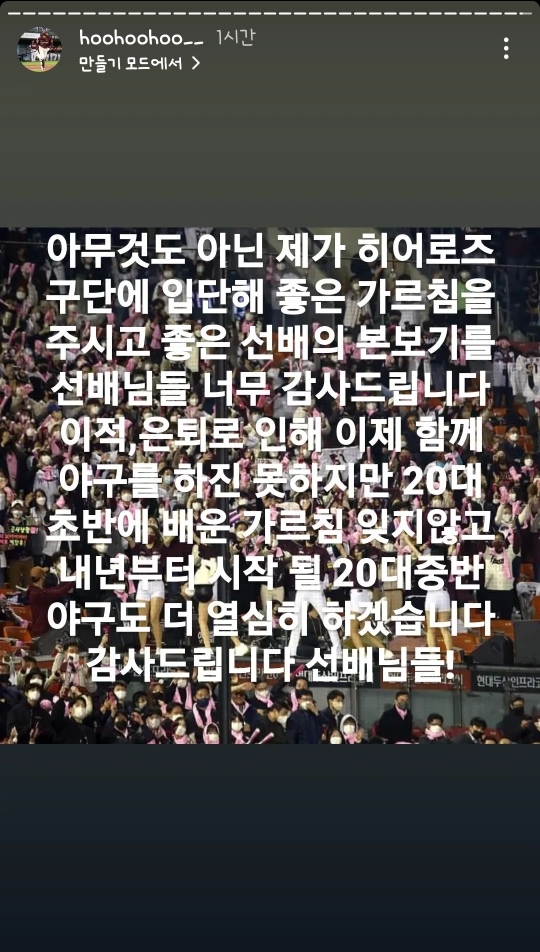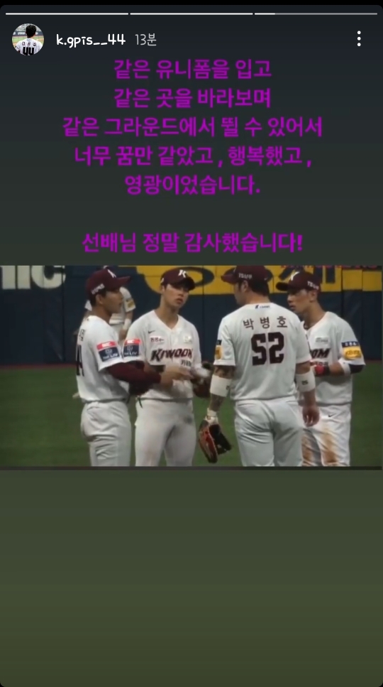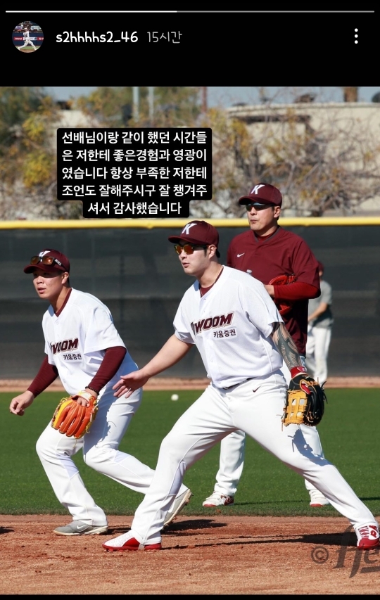 히어로즈 소속 후배 이정후의 인스타 스토리 박음질을 포함하여 후배들의 마지막 인사가 쏟아지고..🥲