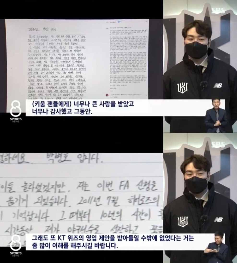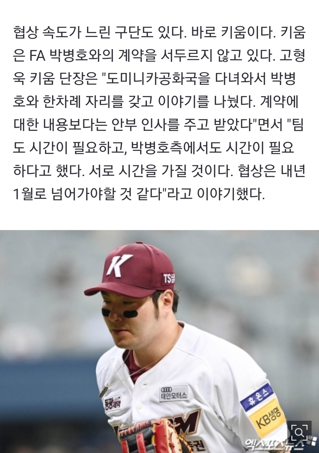 그리고 보도자료에는 "박병호가 시간이 필요해보여서 1월에 협상을 이어나가기로 했다"라는 개구라를 깜 입장을 밝힘