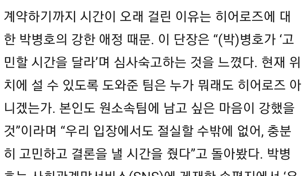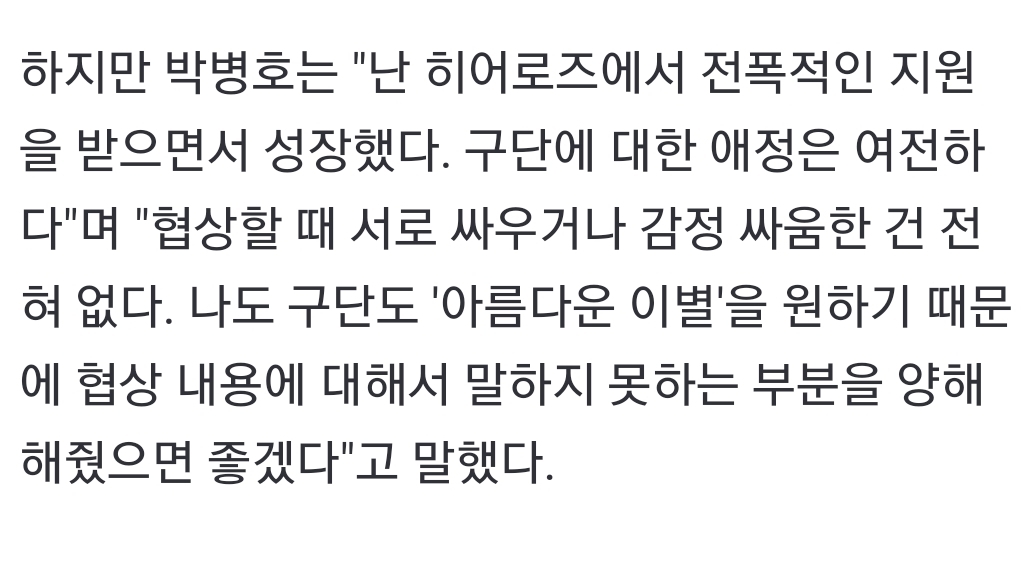 떠나는 박병호가 매체를 통해 히어로즈 팬들에게 전하는 인터뷰