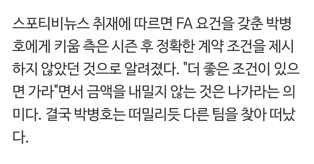 히어로즈는 박병호에게 제대로 된 계약조건을 제시한 적도 없음