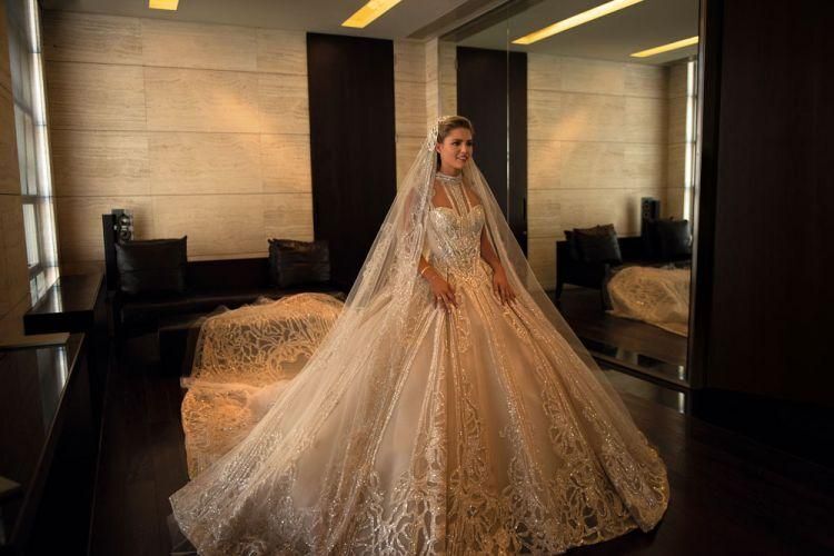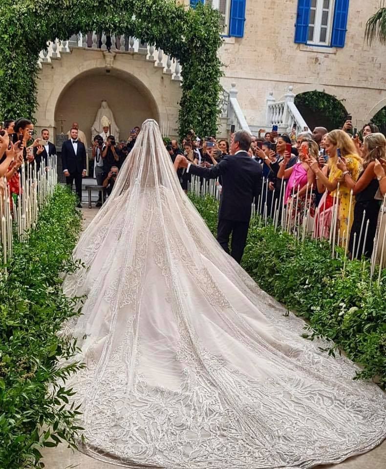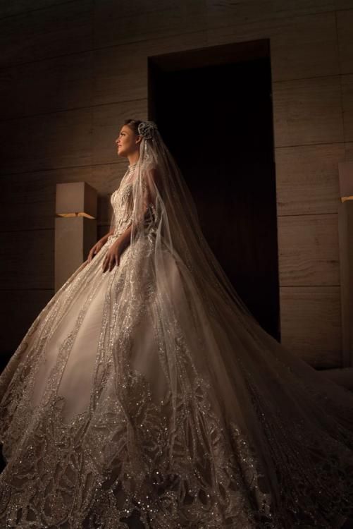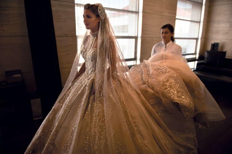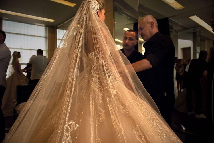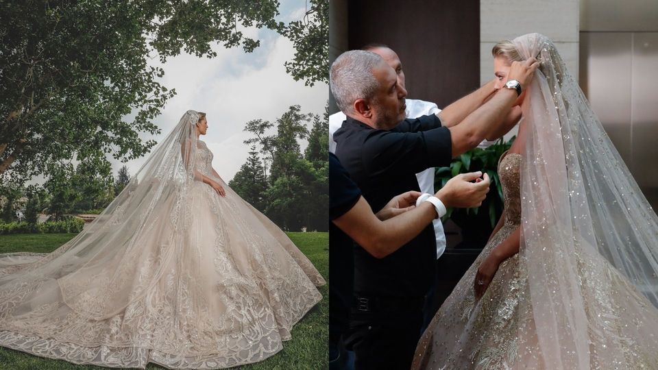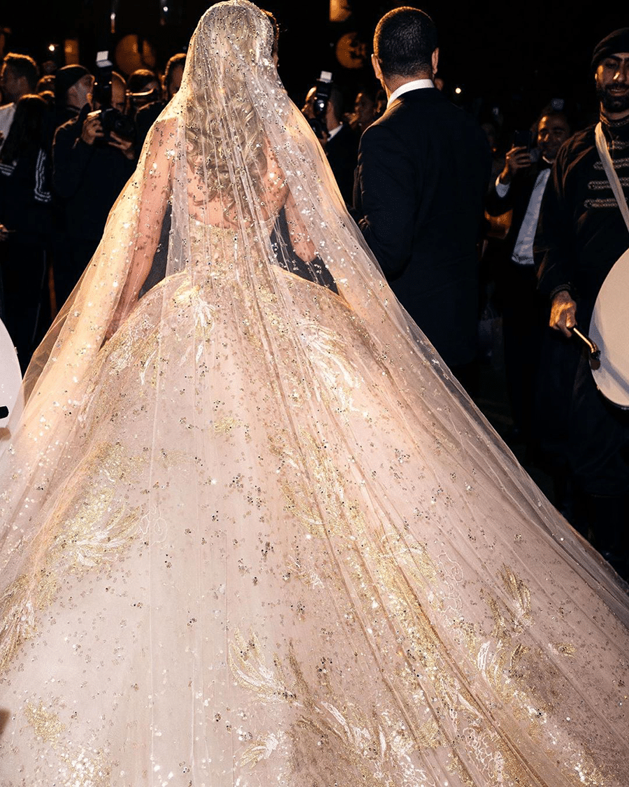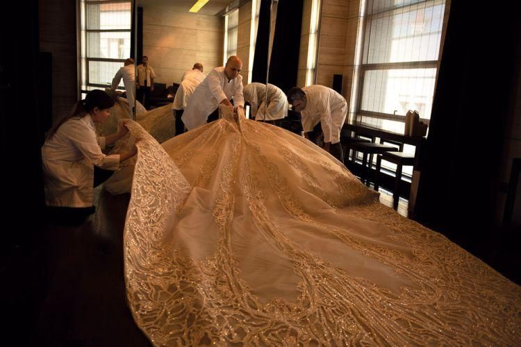 본식 드레스 스팽글 50만개/트레인 길이는 4.3미터