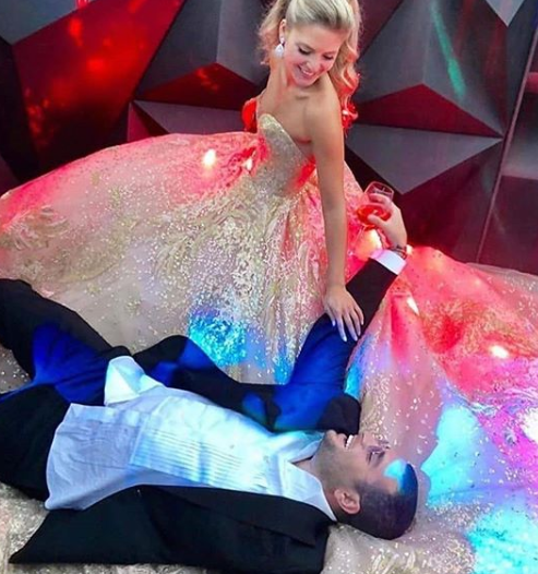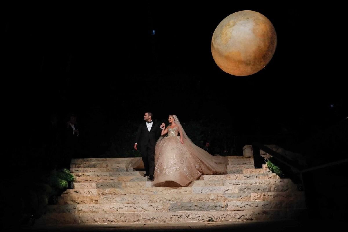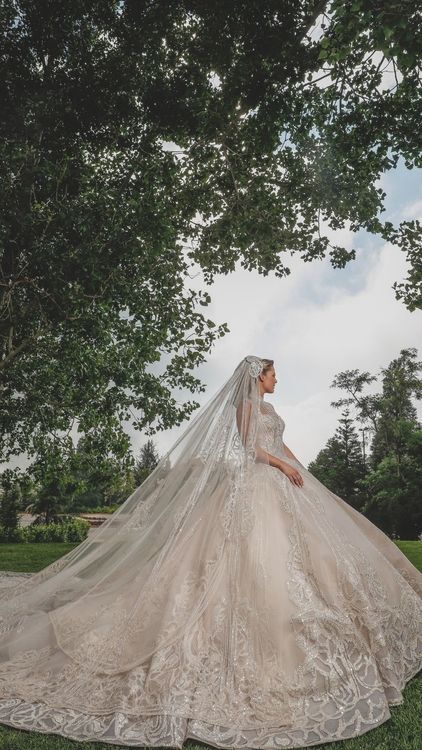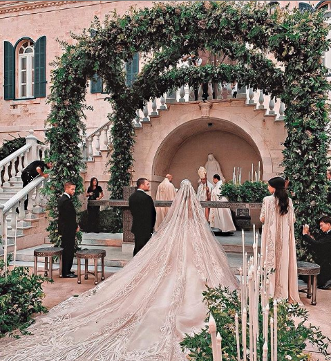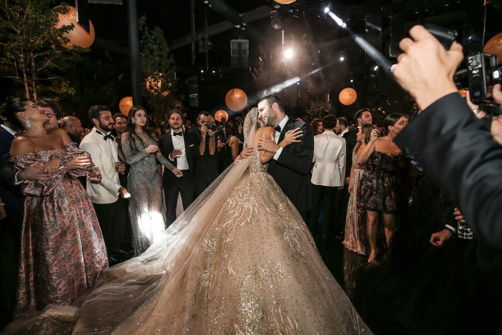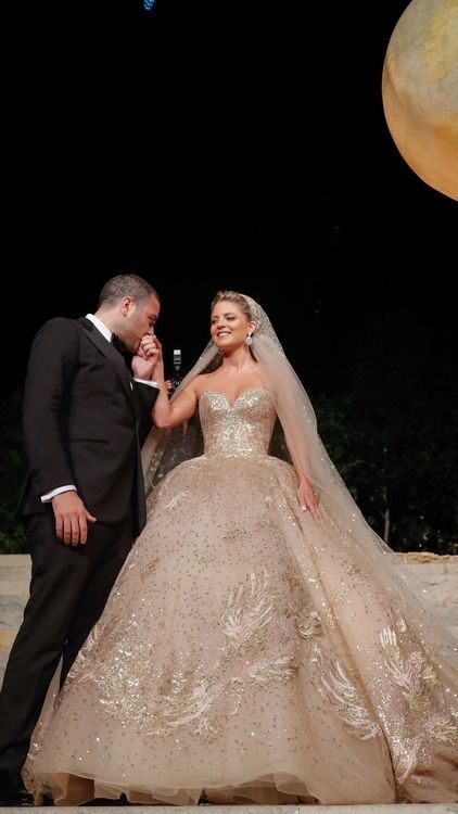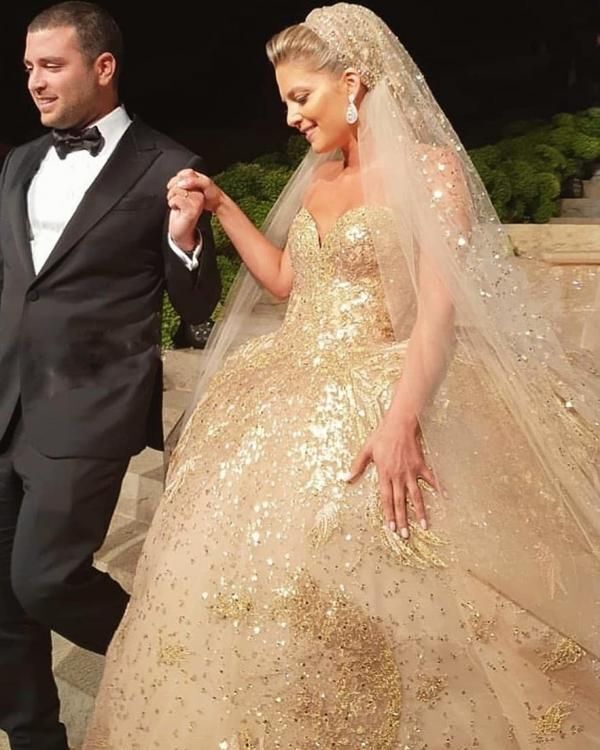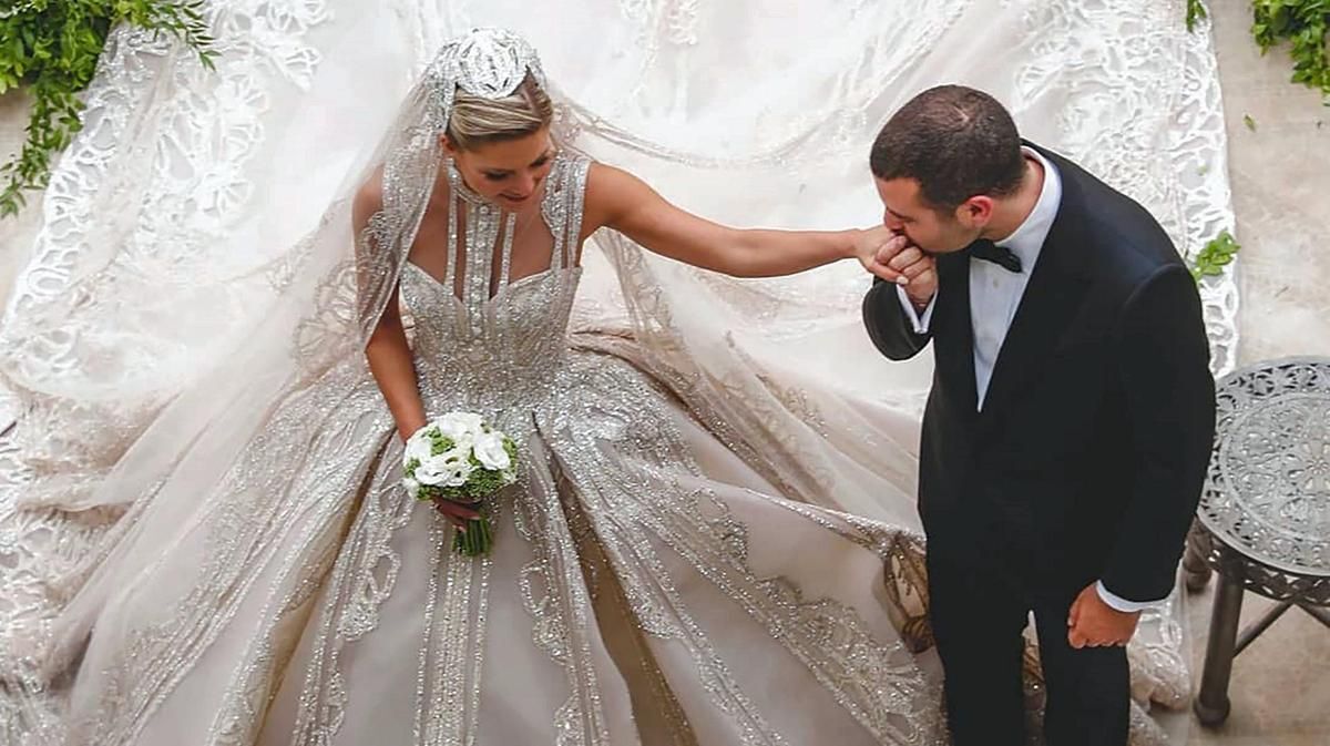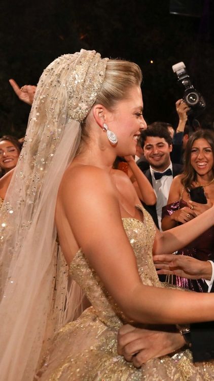 본식 드레스 스팽글 50만개/트레인 길이는 4.3미터