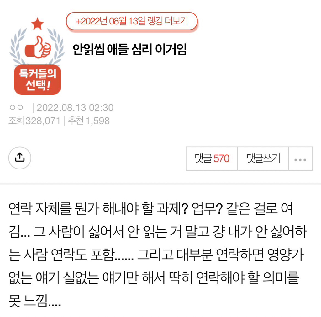 2. 어차피 다음번 연락할때 읽게되고 내가 선톡하는 상황이면 머쓱해짐