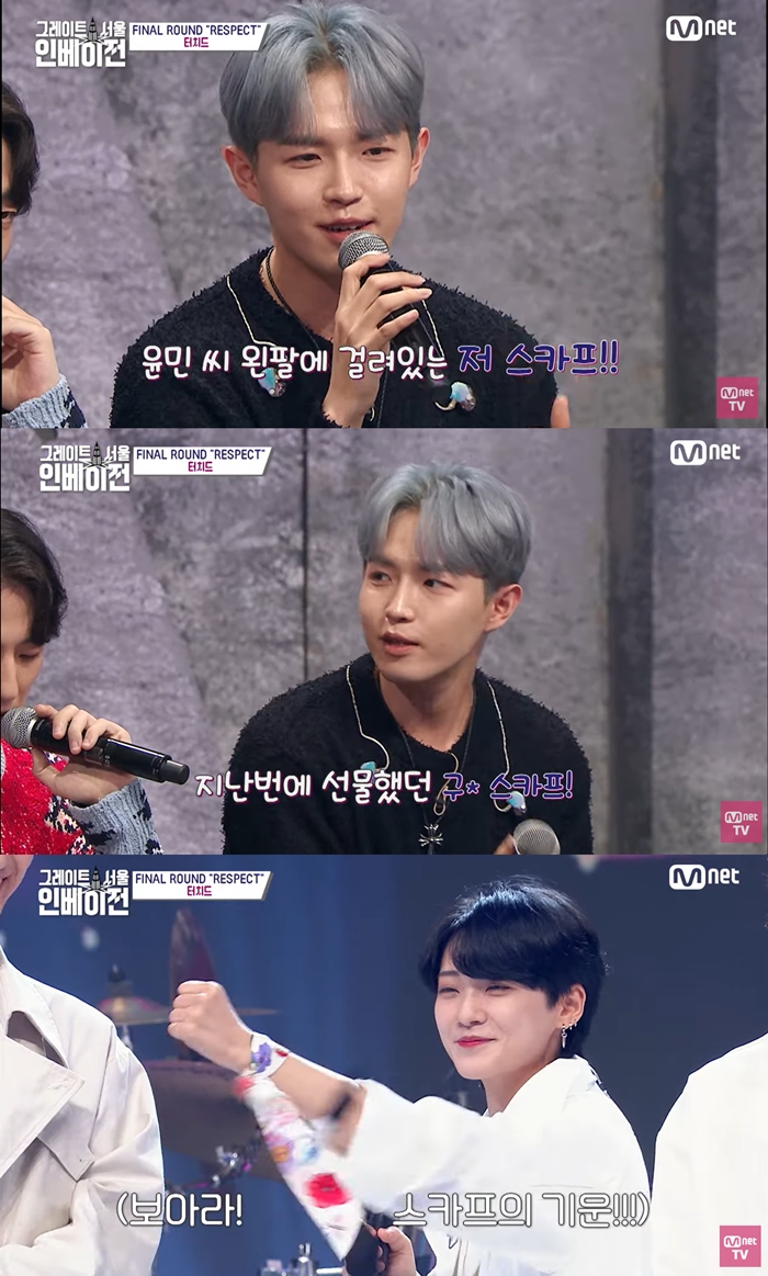 보컬 윤민 손목에 걸린 스카프를 구찌로 바꿔준다고 했는데