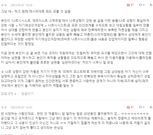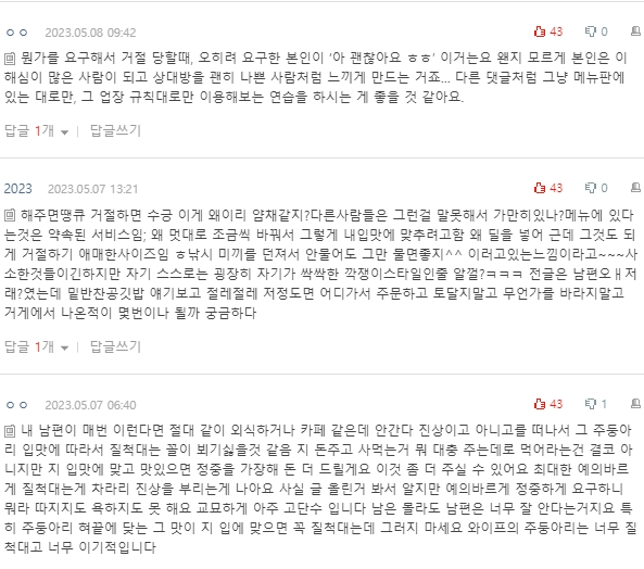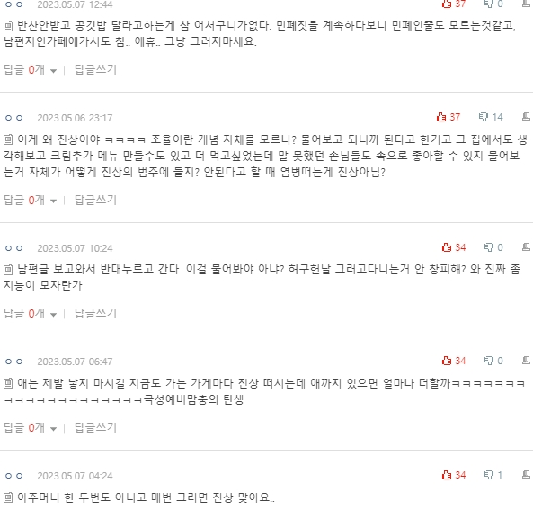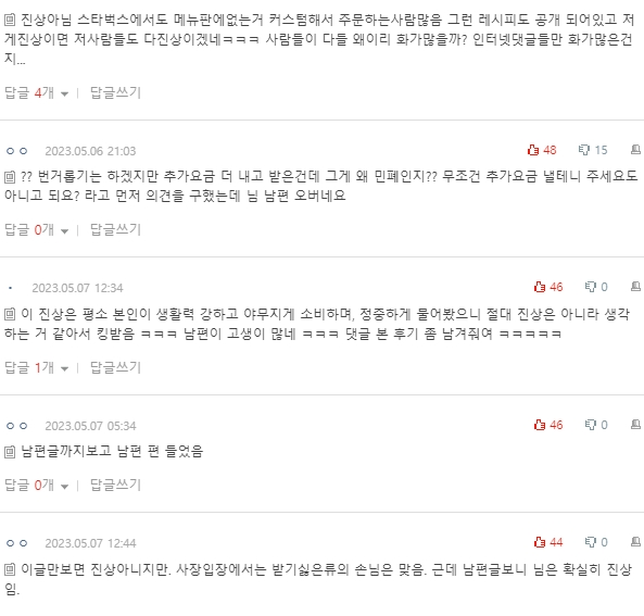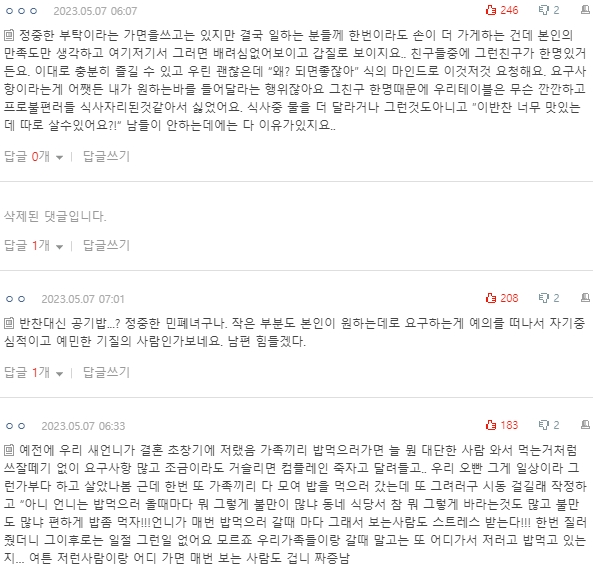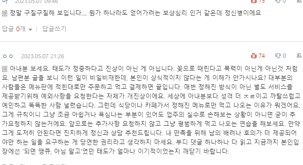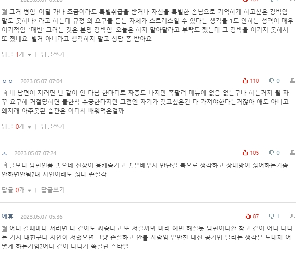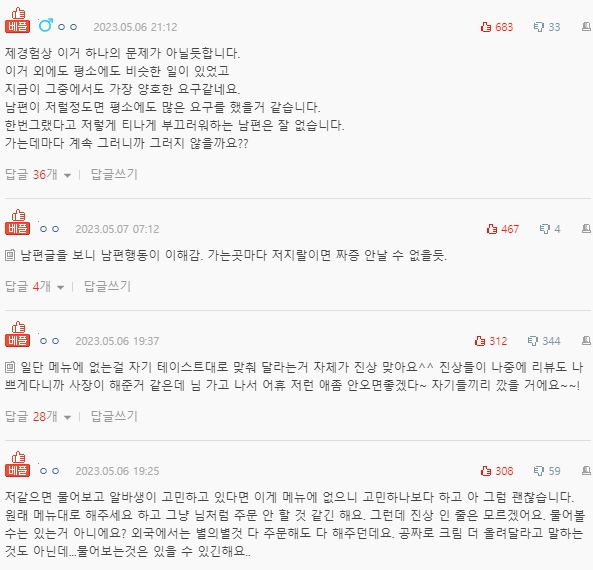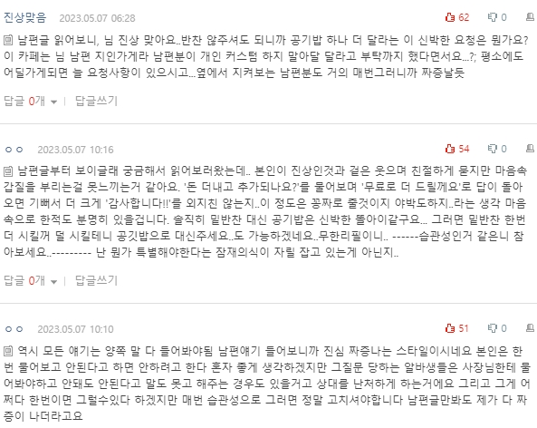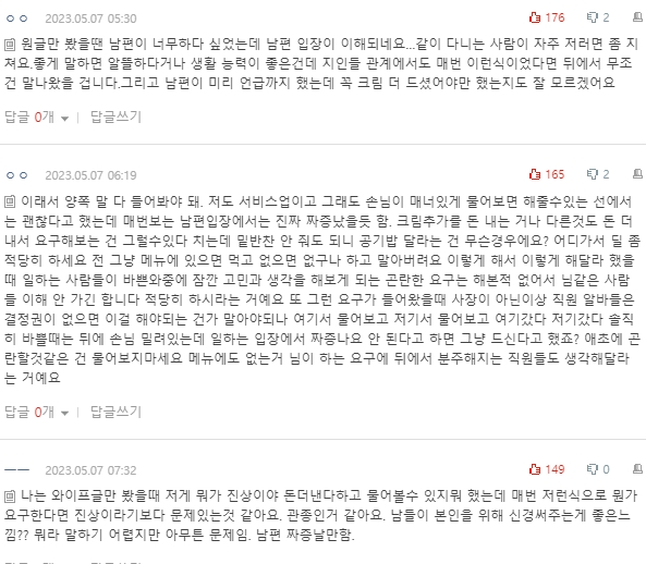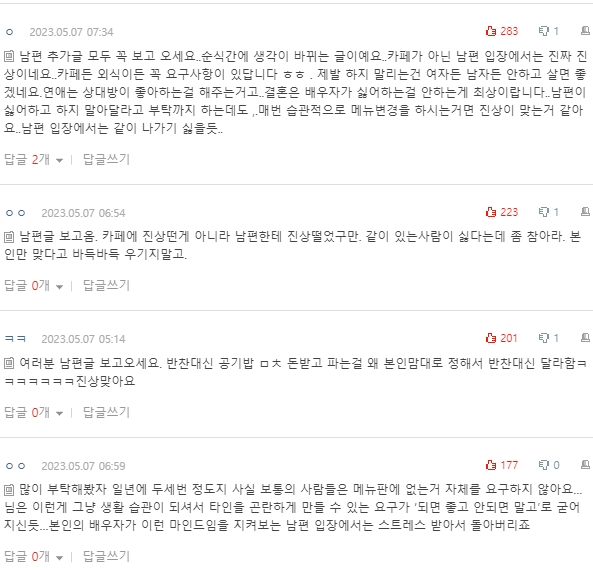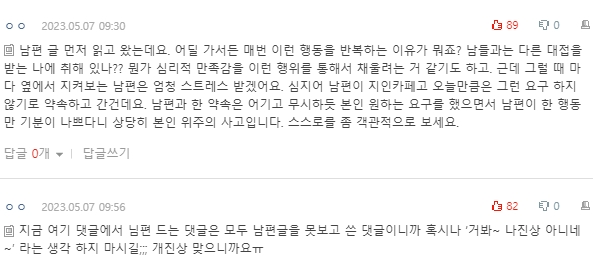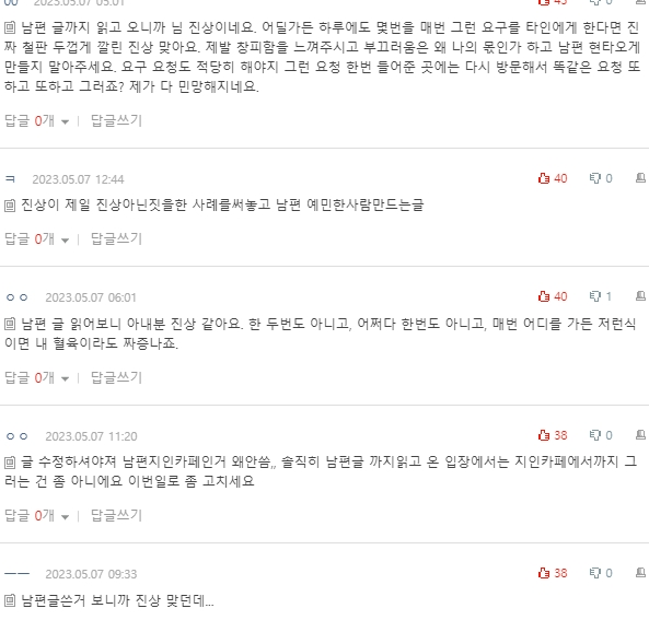 댓글 보면서 글쓴 아내한테 화나지는 않았어요.