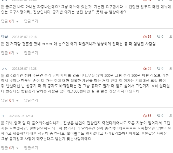 작성자whyyouhavetogoandmake 작성시간 23.10.23 애초에 메뉴얼에 없는건 좀 안햇음좋겟어 한번해주면 저번에도 저 그렇게 먹엇는데 하면서 계속 해달라할거아냐