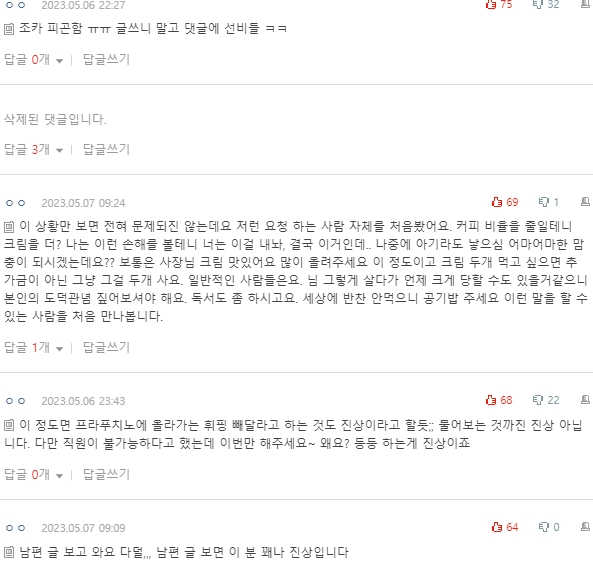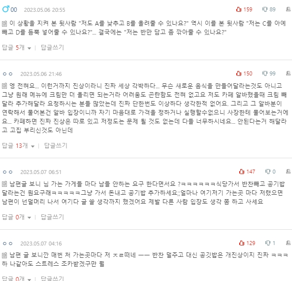 물론 요구를 받는 직원분들 입장에서는 당연히 민폐