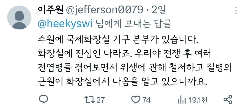 작성자놀자에몽 작성시간 23.10.24 진짜 한국화장실협회 너무 감사 ㅜㅜ...