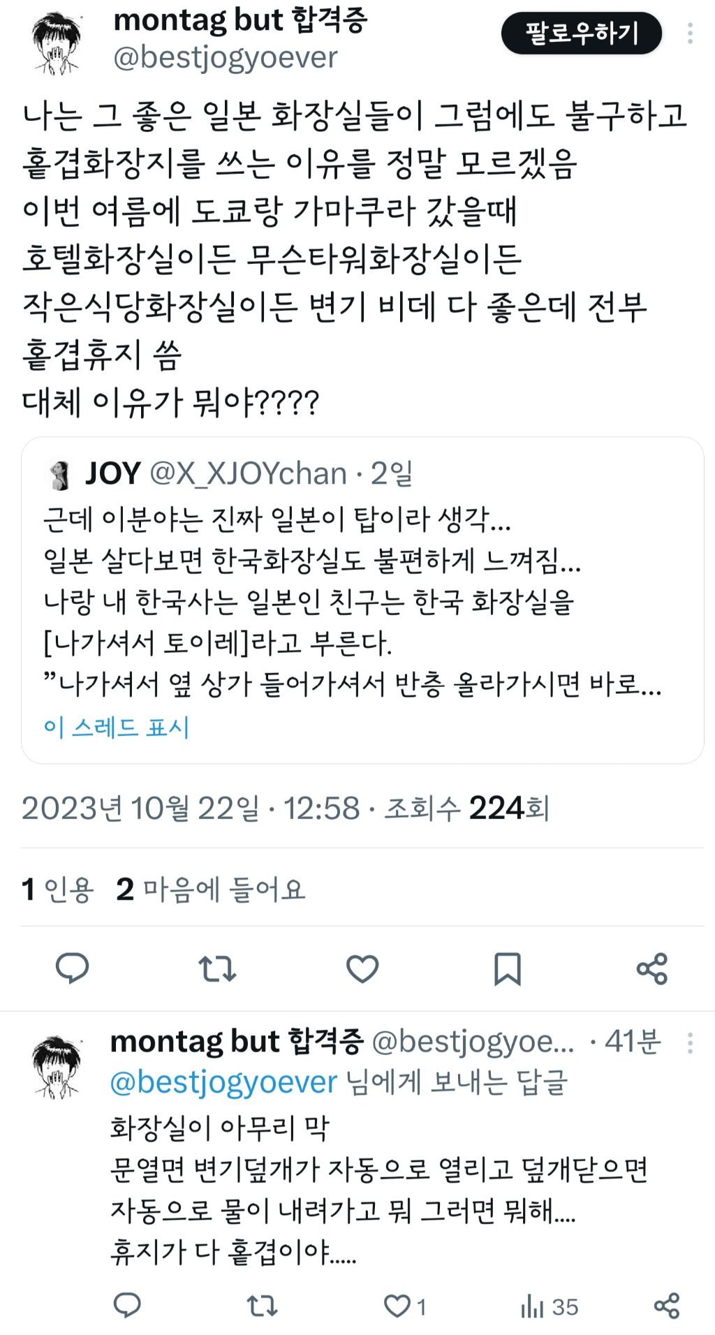 작성자여시횐 작성시간 23.10.24 뭔 일본...?ㅋㅋㅋㅋㅋㅋ