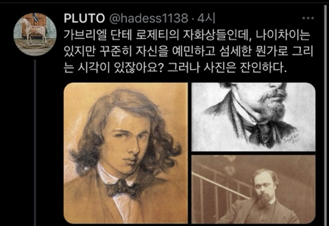 자신을 예민까칠도도미청년으로 그리길 좋아했던 화가는 또 있었으니 로제티라는 남류화가였는데
