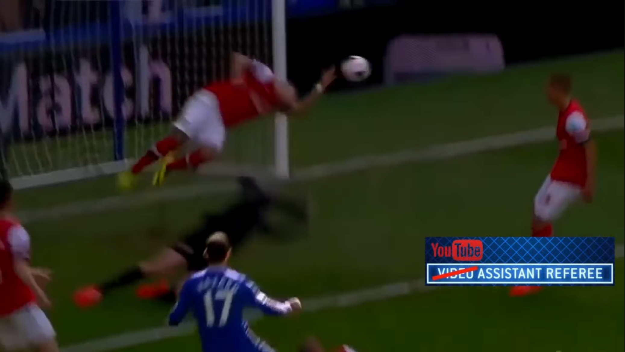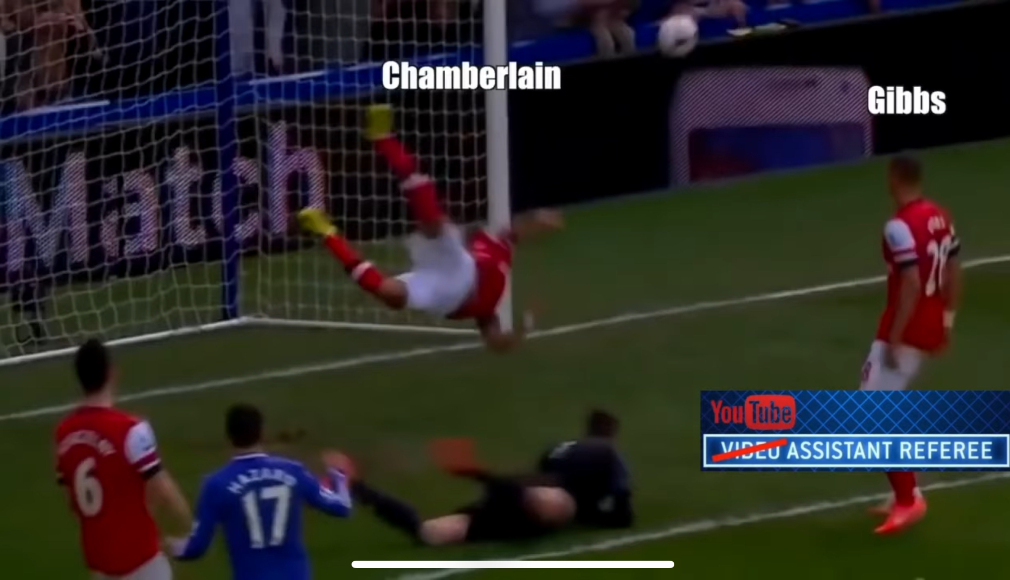 아스날의 미드필더로 뛰던 선수 알렉스 채임벌린(이하 ox)이 아자르의 슈팅을 핸들링으로... 슈퍼세이브해버림