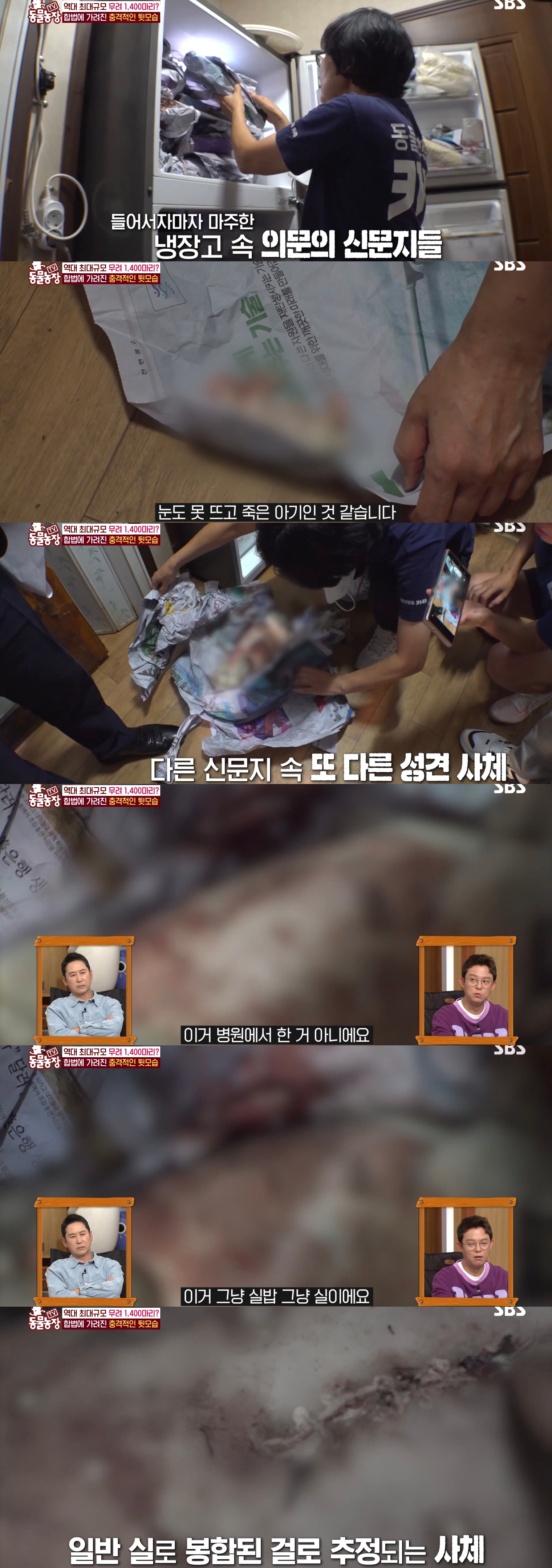 새끼강아지부터 온갖 강아지들 사체가 신문지로 보관되어있었음