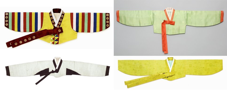 기본적으로 길, 소매, 깃, 동정, 고름으로 이루어져있고