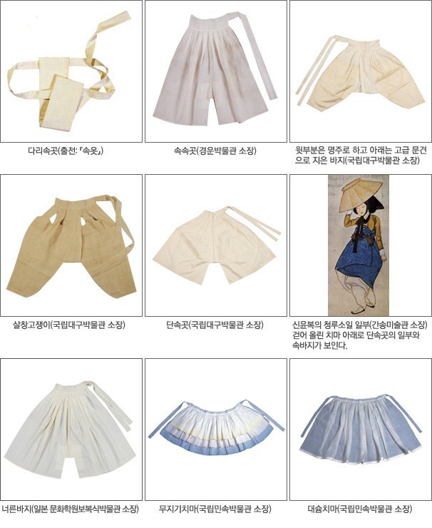 다리속곳>속속곳>고쟁이>단속곳>무지기치마