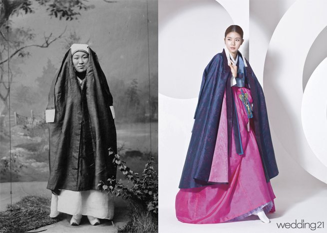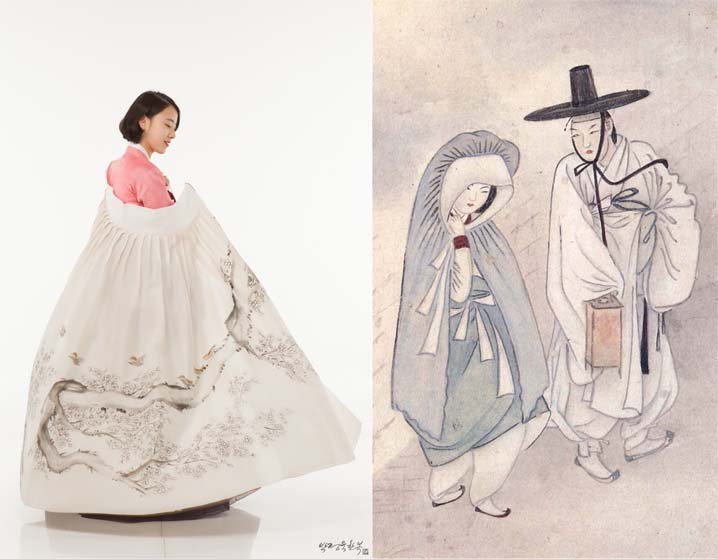 우리가 익히 알고 있듯이 여성 한복의 특징은 짧은 상의인 저고리와