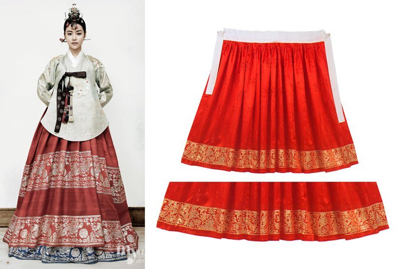 양반가의 치마는 넓고 길며, 직금이나 금박을 놓은 스란단을 넣을 수 있었고