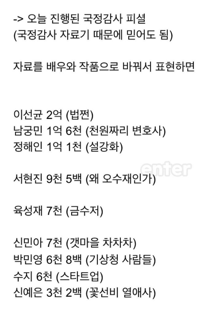 작성자뿌엥항 작성시간 23.10.25 사람들 초봉은 10년째 안오르는데...ㅋㅋ세상돈이 다 연예인한테 갔구나 누군지 모르고 어디서 본거같은 연예인들도 몇백 턱턱 받는다더니