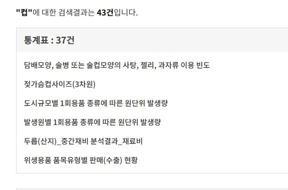 2. 국가통계포털에서 "컵"을 검색해라.