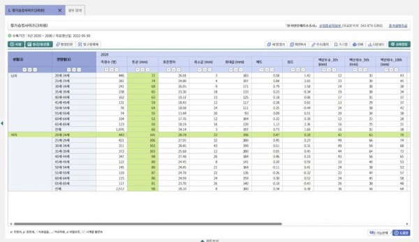 그 외에 궁금한 부분들은 국가통계포털에서 각자 확인해보다 엉덩이 사이즈라던가 허리 사이즈, 팔뚝, 발목 둘레 등등