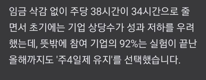 [스크랩] [흥미돋]영국 주4일제 실험결과 작성자주4일제실시해|작성시간23.10.29|조회수7,078 목록 댓글 33 글자크기 작게가 글자크기 크게가 출처 : 여성시대 초코메이커92퍼센트 유지 결정 다음검색 스크랩 원문 : *여성시대* 차분한 20대들의 알흠다운 공간 현재 게시글 추가 기능 열기 북마크 공유하기 신고 센터로 신고 댓글 댓글 33 댓글쓰기 답글쓰기 댓글 리스트 작성자벅억깅 | 작성시간 23.10.29 제발 진짜 제발요 제발제발제발 작성자VILLANELLE | 작성시간 23.10.29 제발 하자.. 내가 이렇게 빌게ㅠ 작성자06:35 | 작성시간 23.10.29 제발여… 작성자낑깡여시 | 작성시간 23.10.29 우리도 하자 제발 작성자니나니나니니니 | 작성시간 23.10.29 제발진짜제발 아니 일주일중 하루만 더쉰다고 세상이 망하냐고요 댓글 전체보기