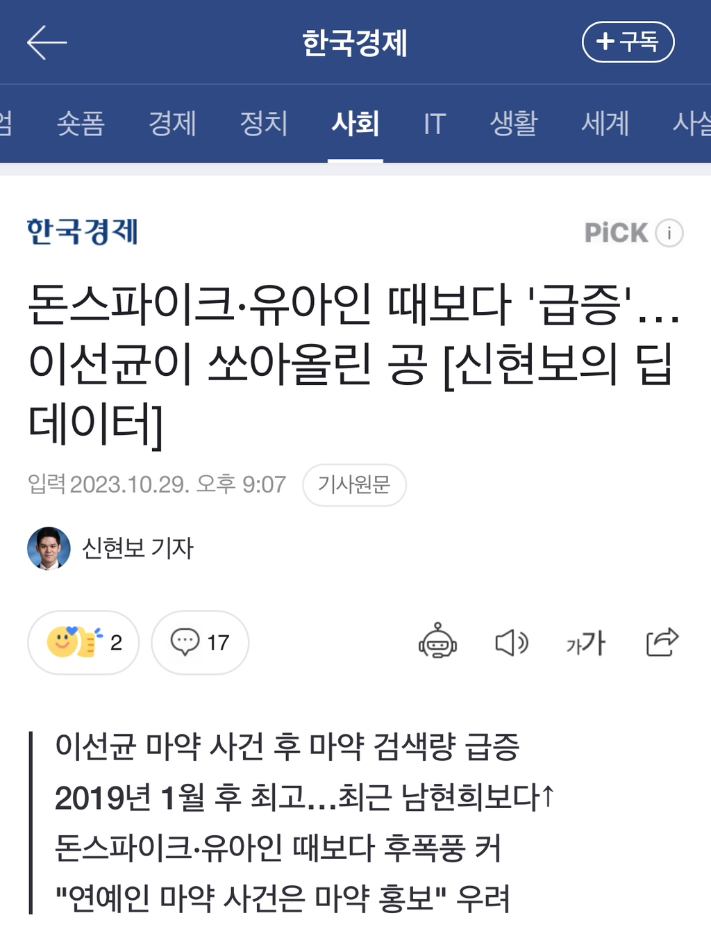 최근 마약에 대한 관심이 급증하면서 역대 2번째로 많은 검색량을 기록한 것으로 나타났다. 배우 이선균이 마약 사건에 이름을 올리면서 마약에 대한 사회적 관심이 많이 늘어난 것으로 풀이된다.