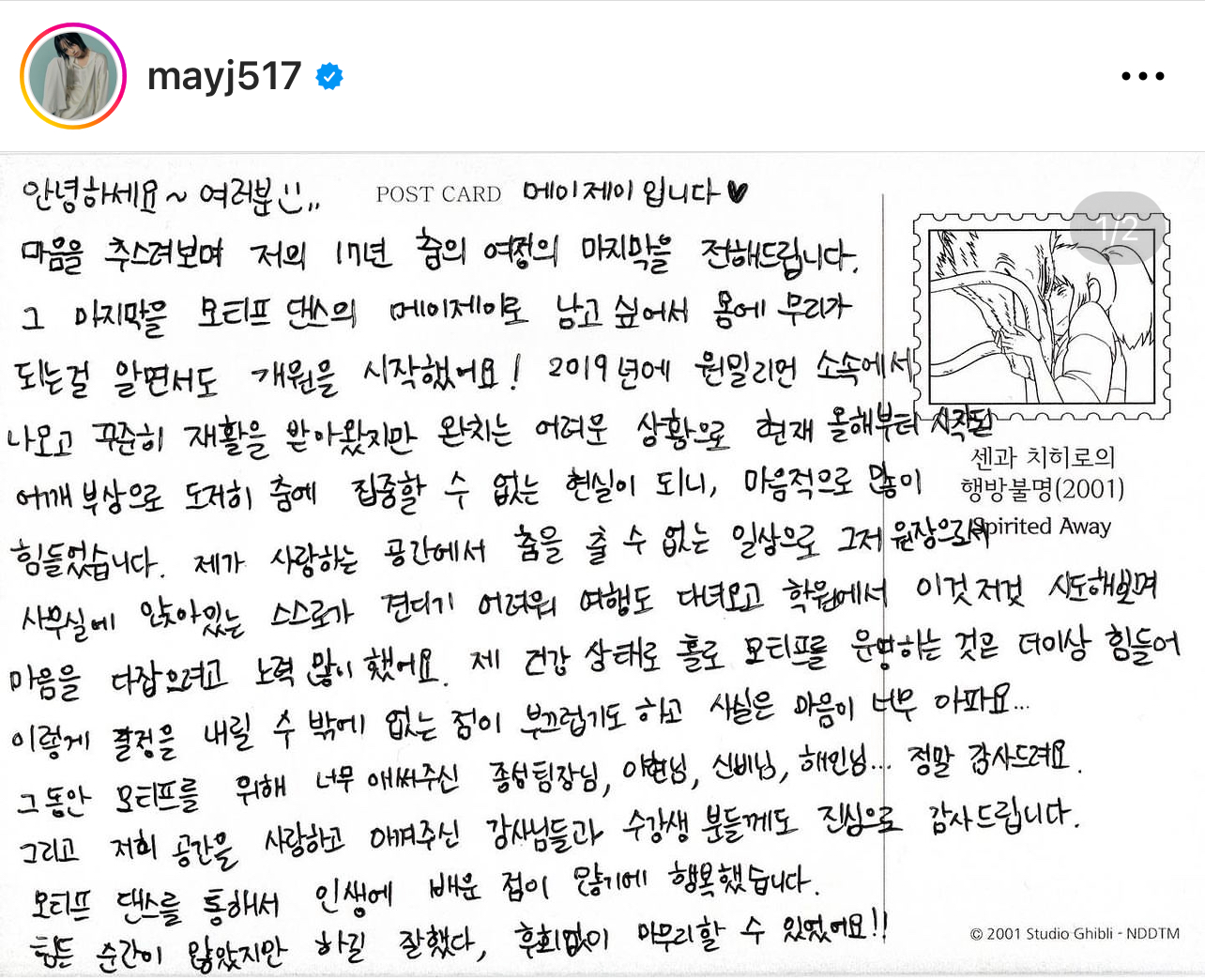 작성자치킨은나줘 작성시간 23.10.30 정말 좋아하던 춤을 못하게 되는 심정이 어떨지.. 이제 다른 일에서 즐거움을 찾으셨으면 좋겠다