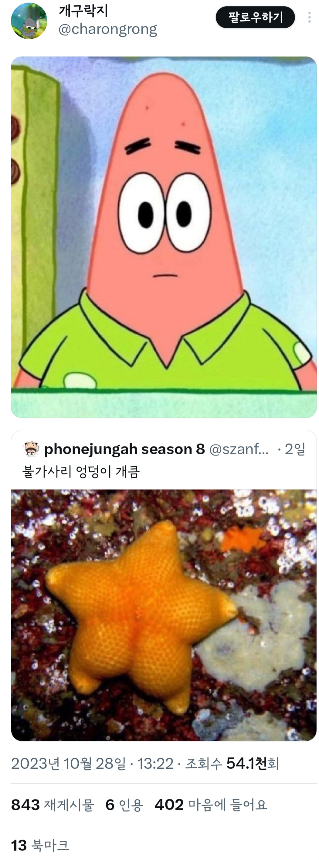 [기타]불가사리 엉덩이 개큼 작성자서지혜.|작성시간23.10.30|조회수15,158 목록 댓글 25 글자크기 작게가 글자크기 크게가 출처 : https://twitter.com/szanfno/status/1717696904119885858?t=82PPPutiqFOKrkFgKYcFTw&s=19 다음검색 현재 게시글 추가 기능 열기 북마크 공유하기 신고 센터로 신고 댓글 댓글 25 댓글쓰기 답글쓰기 댓글 리스트 작성자달조각을 주우러 숲으로 가자 | 작성시간 23.10.30 쉽게 만든 엉덩이가 아니라고요 이미지 확대 답댓글 작성자칠리치즈후라이 | 작성시간 23.10.30 오우 세상에 작성자줄쏘야 | 작성시간 23.10.30 오 뭔가 샘스미스같애 작성자dick me 웃기네 | 작성시간 23.10.30 샘냐엉덩이같아ㅋㅋ 작성자건전한 배틀태그 | 작성시간 23.10.30 뚱이 뒷태 미쳤다 댓글 전체보기
