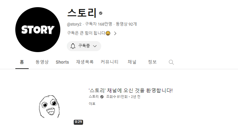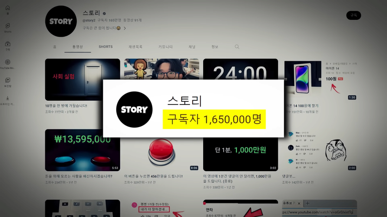 알고보니 이비온이라는 채널의 주인이 실은 168만 구독자를 가진 유튜버 '스토리'였다.