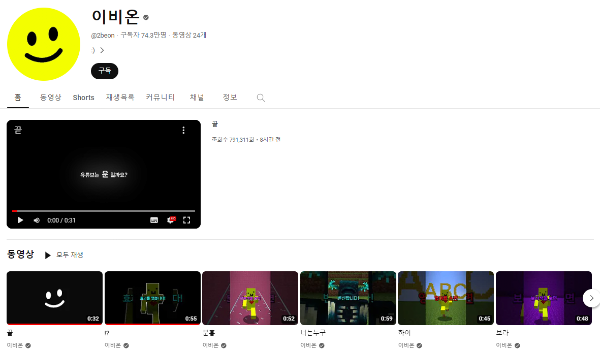 최근 '이비온' 이라는 마인크래프트 유튜버가 약 한 달만에 30만의 구독자를 돌파하며 개떡상중이다.