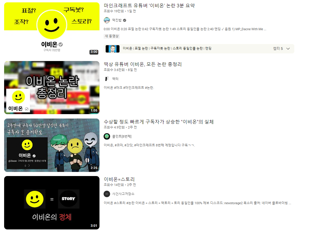 이들은 이비온이 구독자 봇을 이용해 구독자를 늘렸고, 채널에 올라오는 영상들도 유명 마인크래프트 유튜버들의 영상을 표절했다며 지적했다.
