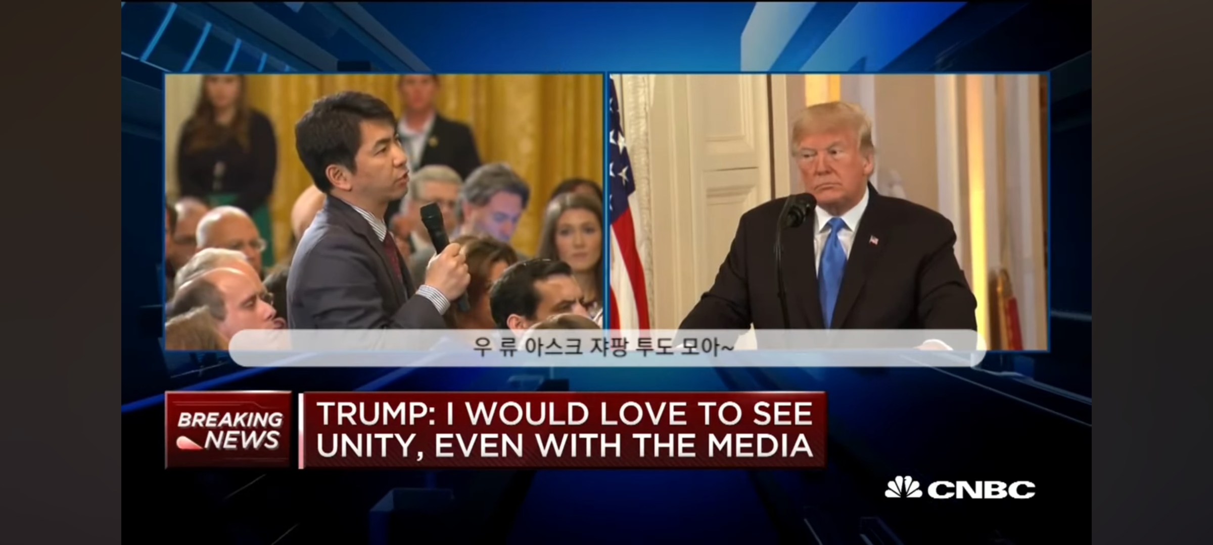 그런 인터뷰를 하기 위해서는 제발 영어 똑바로 하길... 지네나라 영어로 해서 미국인이 못 알아 들었으면 빡쳐하지 말고 뭐가 잘못됐는지 생각해보길...