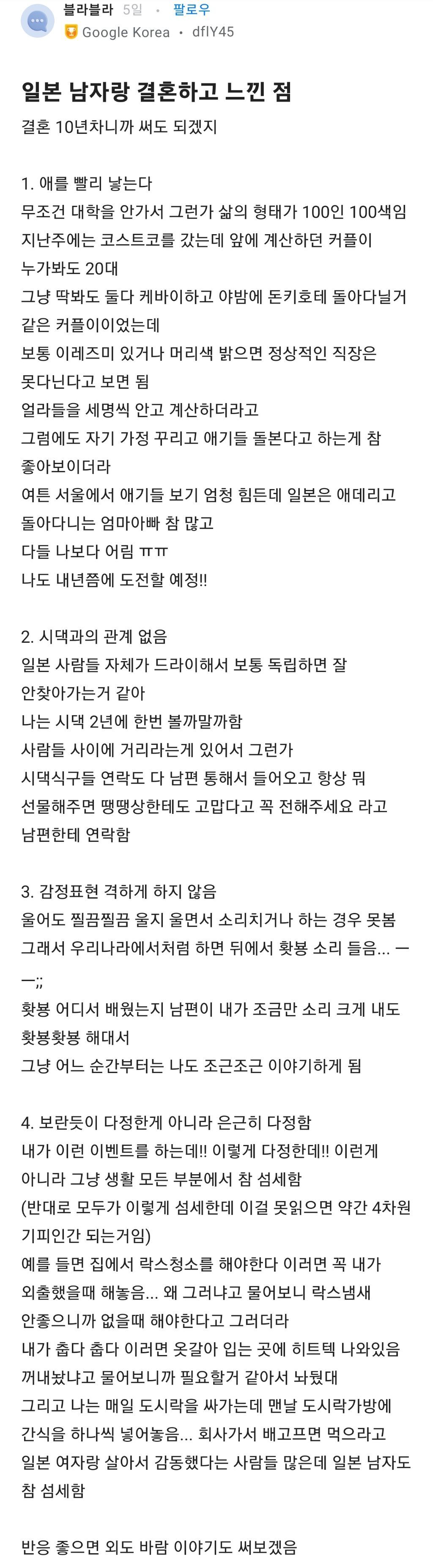 작성자배고픔과배부름사이 작성시간 23.11.01 일본 사람이랑 결혼한지 10년차인데