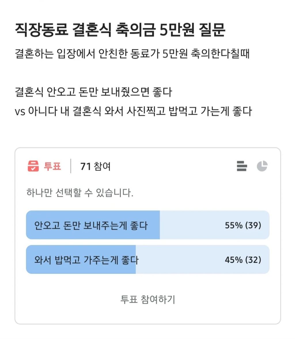 혹은 식장에 안가고 송금하느냐로 고민하게됨